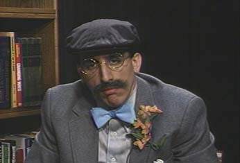 SIR RANDOLPH WINDBAG, PROF. MERITUS (Character Improvisation by Al Quagliata) Height: 5'7" Weight: 110 lbs. Eyes: brown Hair: (hat head) Enjoys: confusing.. err, enlightening young minds at the East Rensselaer University in West Rensselaer, PA |