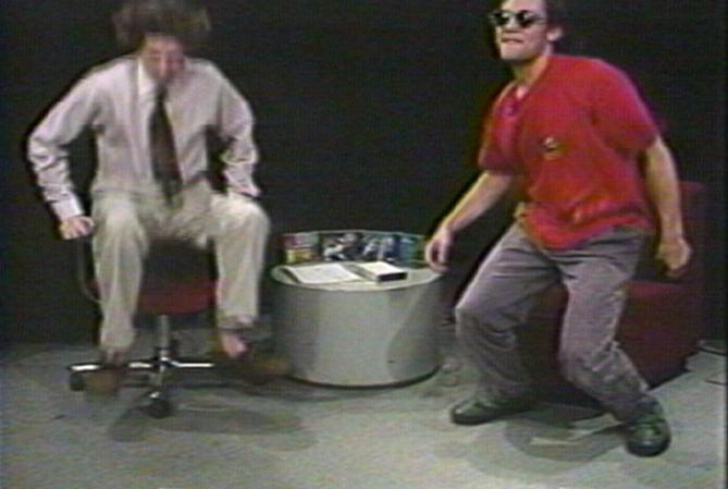 Jim simulating 'Life in a Blender' Paul tests his 'chair' on Jim Paul's Dossier Jim and Paul on the 50th Episode