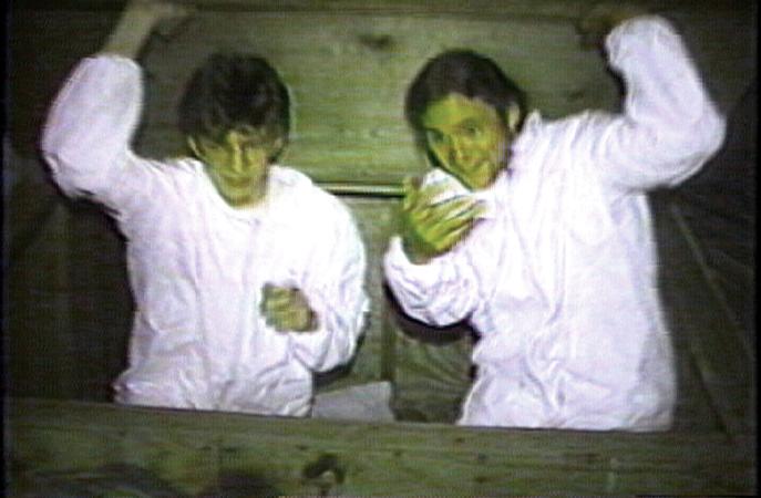Paul playing with power tools Jim and Paul on the 'Win A Date Episode Jim and Paul 'keeping music evil' Jim and Paul in a box..